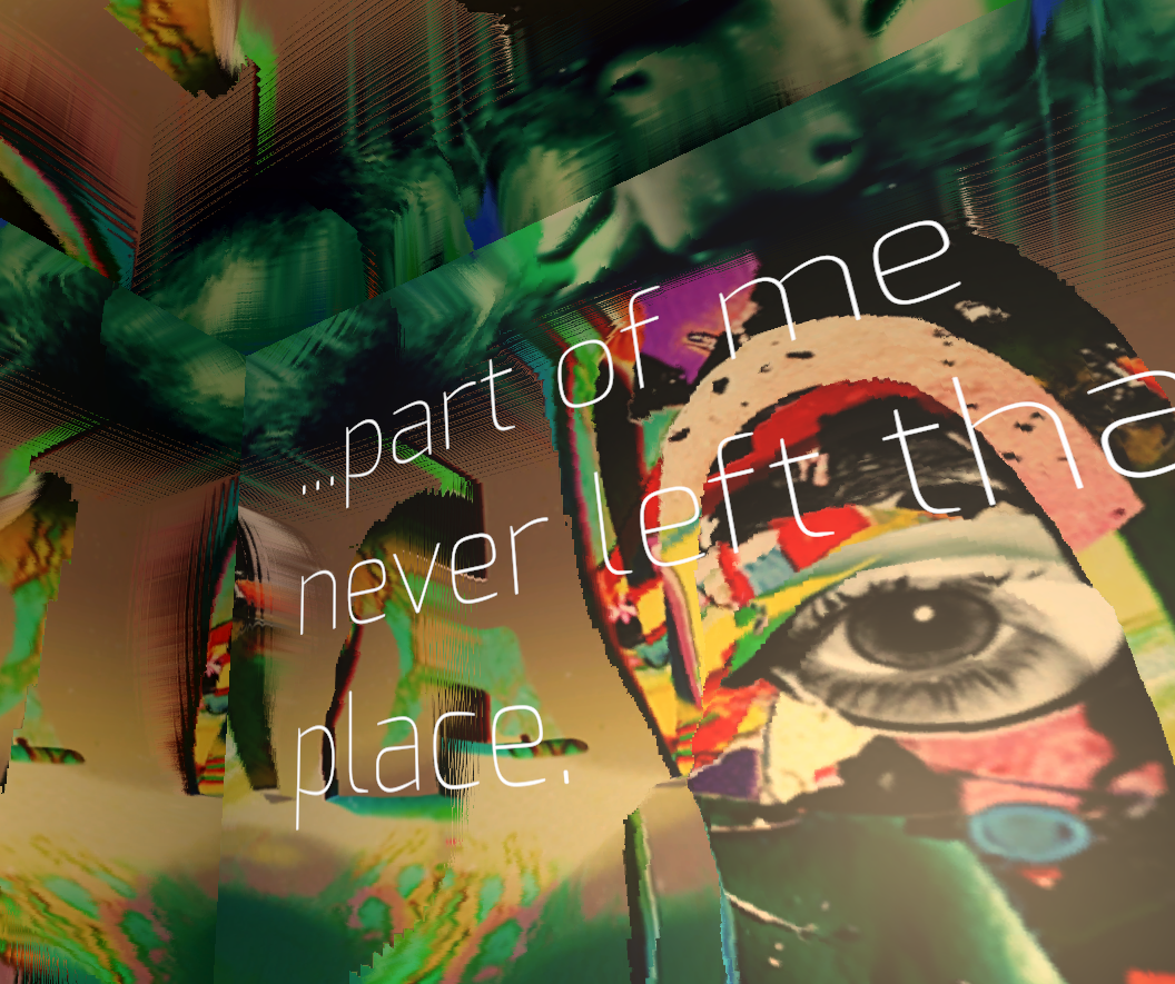 never left is an attempt to artistically reappropriate and re-sanctify the act of self-disclosing to technology. Prompting the player with the question "Where do you call home?", the game presents the player with a large virtual space through which to fly and reflect upon glitch-like visuals, navigable music, and anonymously sourced answers to the aforementioned question, eventually culminating in the opportuntity for the player to submit their own answer.